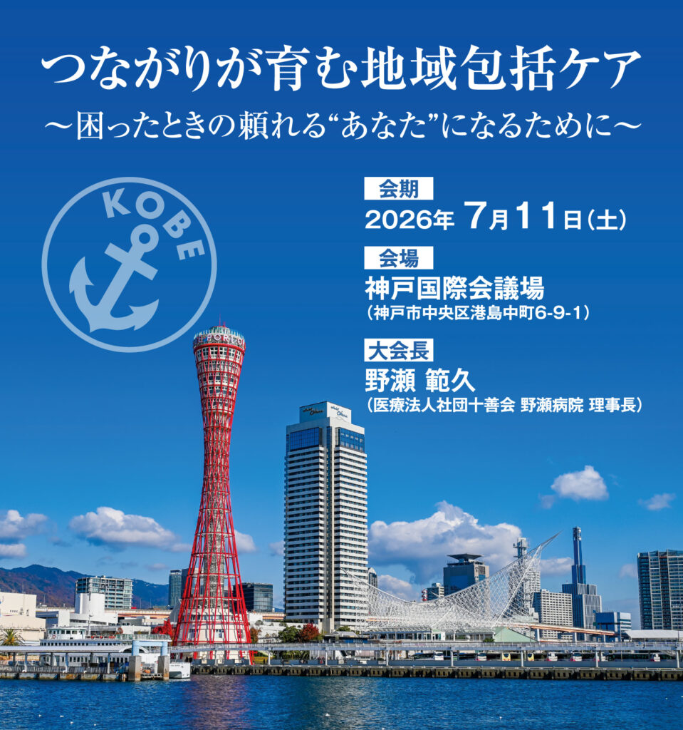 そして、来年、2026年7月11日、神戸で第12回地域包括ケア推進病棟研究大会を開催する運びとなりました。例年、東京での開催が続いておりましたが、次回は神戸、関西で開催させていただくことになりました。
